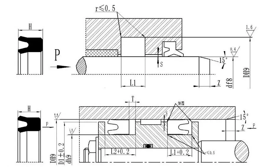 UHS U-Seal เป็นซีลแบบสมมาตรสำหรับการใช้งานทั้งที่เจาะและเพลา มีส่วนตัดขวางที่เล็กกว่าและสามารถติดตั้งในร่องรวมได้ ต้องใช้แหวนยึดที่รากเมื่อใช้ภายใต้แรงกดดัน 16-32 MPa